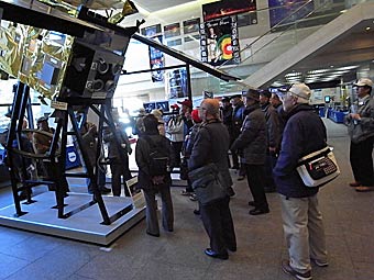 | 2月18日、今月の歩こう会は相模原市内の木もれびの森を散策して宇宙研を見学する予定でしたが、前夜からの雨が朝方まで残ったため午前中の行事を中止して午後から宇宙研の見学だけを行いました、参加者は32名でした。 当研究所は日本の宇宙科学研究の中心施設として1989年に開設され、ロケット、人工衛星搭載機器の基礎開発/試験や次世代育成の大学院などがあります。昨年話題になった「はやぶさ」もここで組み立てられました。 所内では熱心なご担当の説明により、施設紹介のビデオ視聴、現在組み立て中の2014年打上げ予定の国際共同水星探査計画の探査機"BipiColombo"の見学、各種の試験装置、展示コーナーなどを見学しました。 |
