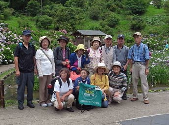 6月の歩こう会は京急県立大学駅(横須賀市安浦)から「横須賀しょうぶ園」経由葉山まで、三浦半島を約2万歩で横断しました。しょうぶ園での新しい発見は、菖蒲にはこんなにも多くの品種(名前)があるとは!極端にいえば、一株ごとに違う名前が付いていました。