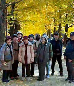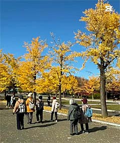好天に恵まれた19日、10名が参加して紅葉が見事な広大な園内を楽しく散策しました。