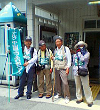 5月12日、今日も朝から気温が高目、そんななか須原宿で涼しさを呼ぶ木曾檜をくり抜いて作った井戸を発見!これを水舟と言うそうです。その水舟の前で前で横浜四人組と吹田拠点の佐藤さん。次の1枚はJR中央本線大桑駅前です。 明日から浜松4人、茨木5人、静岡からはバスで30人が参加の予定、久しぶりに多数の行列になります。 |